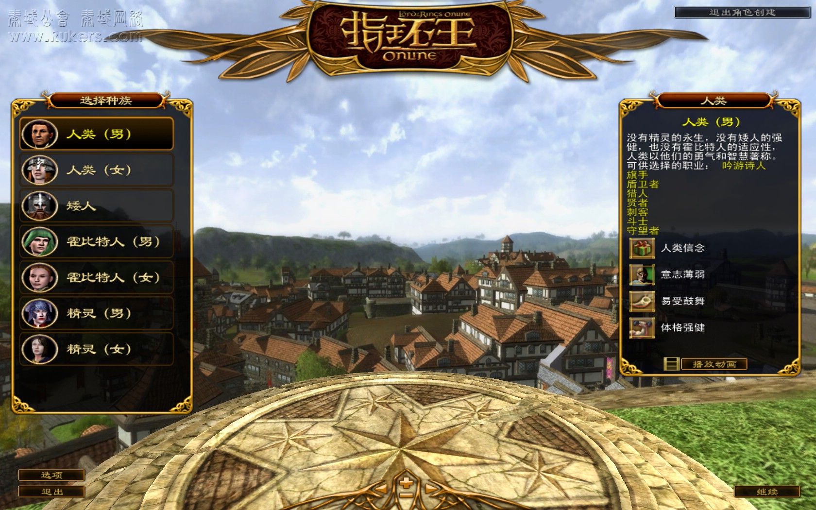 游戏中分4个种族:人类,矮人,霍比特人,精灵,除了矮人外,玩家可以自选性别。游戏中会出现一段精美的动画来介绍每个种族。而每个种族也拥有属于自己的种族特色。