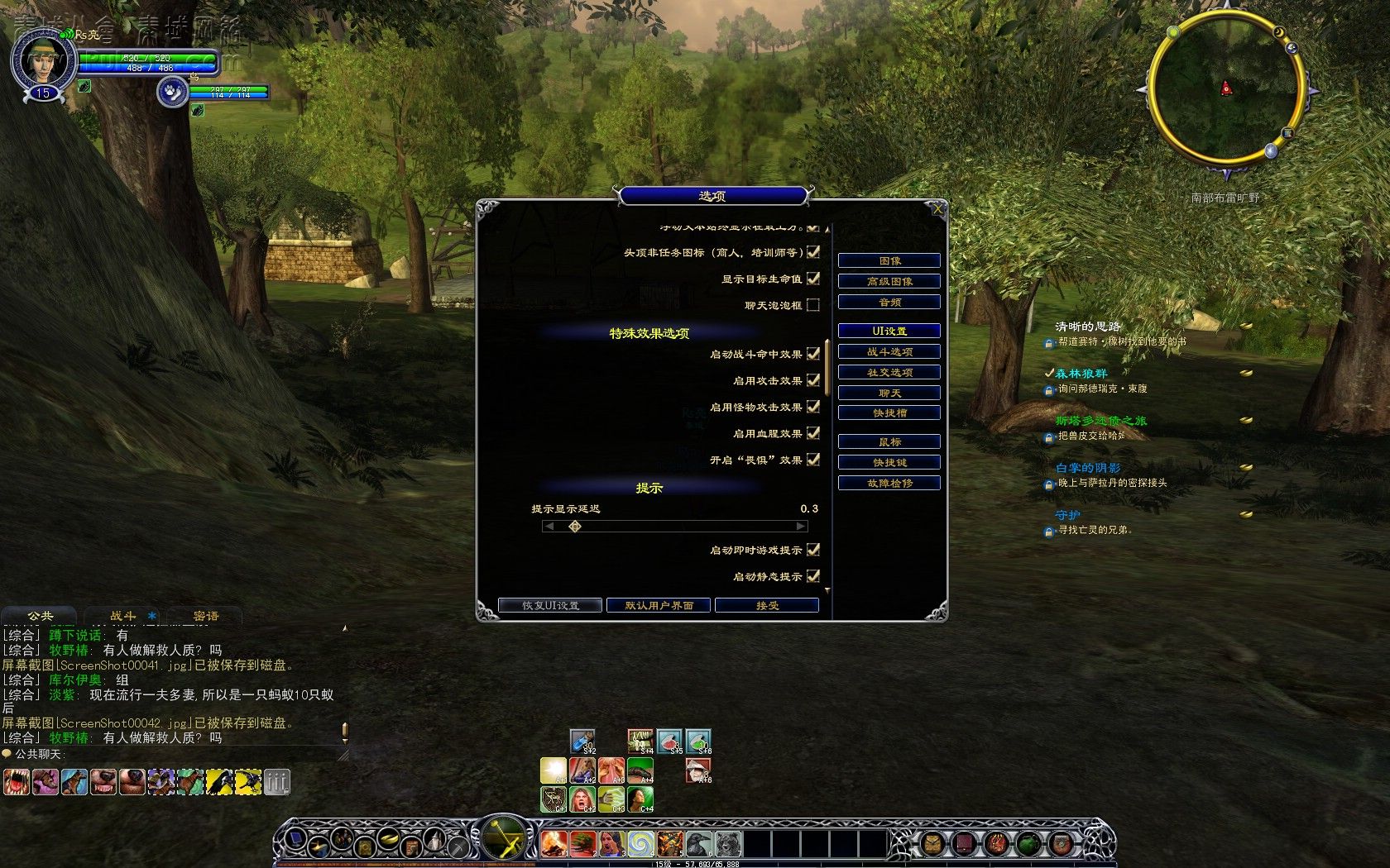 游戏的界面和现在流行的《魔兽世界》有几分相似.还有经典的UI设置.在这里就不多介绍了.玩家们可以自行体验.方便自己的设置.