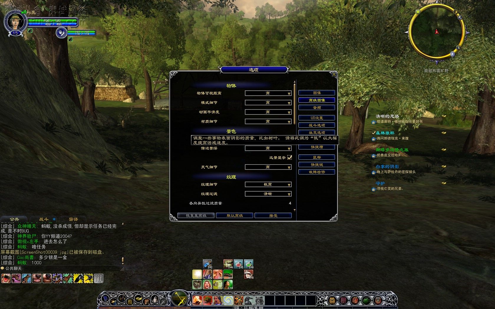 可以说打了高清补丁以后的游戏画面非常的逼真.画面也非常的华丽.绝对不逊色与AION与剑3.不得不说欧美的3D技术纯熟.画面之逼真真叫人惊讶.你进入游戏后就可以立即进入副本模式,由一个互动的NPC引导来完成入门。很多时候,NPC是用行动来表达自己要做什么你需要做什么。因为种族的不同,指环王游戏已经为喜欢冲劲的你设置了不同的主线任务。并且,这些主线任务都是通过副本内一种3D动画来向玩家表达事情后完成的。另外还有视觉模糊效果当您受伤了或者腿断了.游戏内显示的都非常逼真和现实生活中的一样..仿佛自己亲身进入游戏一样~~